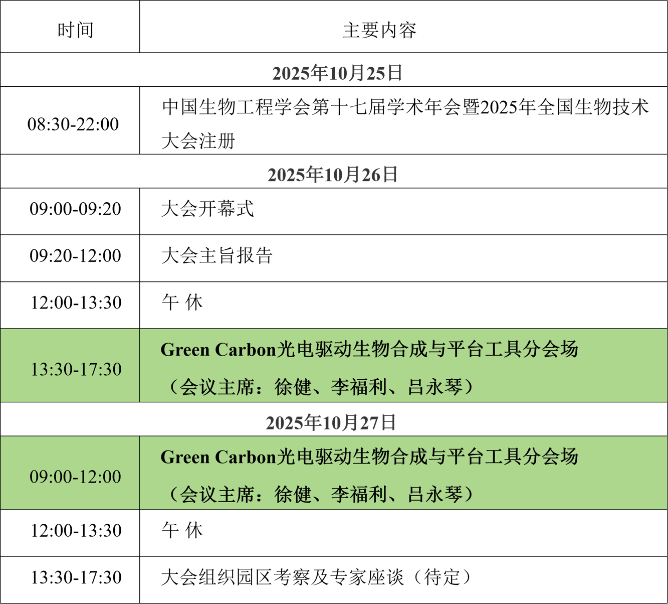 会议期间,中国科学院青岛生物能源与过程研究所生物能源研究室与《Green Carbon》期刊中心将联合组织平行分会场“Green Carbon光电驱动生物合成与平台工具”,由青岛能源所徐健研究员、李福利研究员,北京化工大学吕永琴教授担任分会主席,为与会者提供一个高水平交流平台,集中展示最新研究成果,促进学科交叉融合,共同推动我国在绿色生物制造与“双碳”技术领域的原始创新与产业落地。我们诚挚邀请所内外专家学者、学生、企业家、投资者参加本次盛会,共绘绿色生物经济新蓝图!