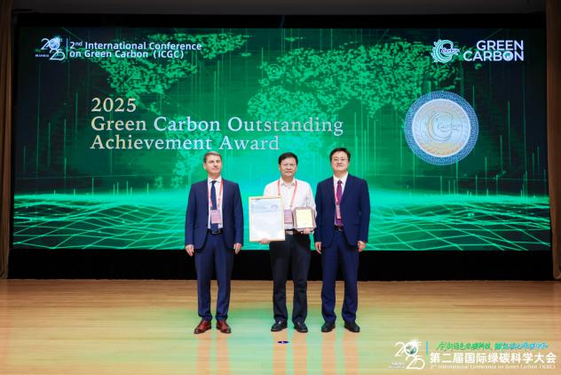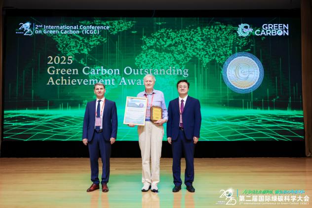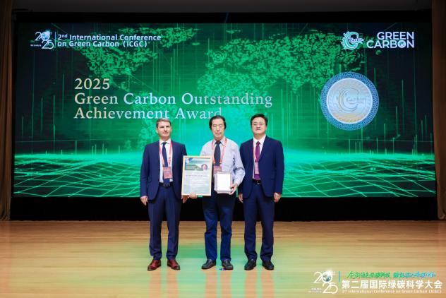 开幕式期间,大会与《绿碳(英文)》(Green Carbon)期刊共同发起的首届“绿碳杰出成就奖”举行了颁奖仪式。期刊主编吕雪峰研究员和Valentin Valtchev教授分别为奠定和推动绿色化学、绿色生物制造、绿色能源材料等相关领域发展的领军科学家——中国科学院院士、华东师范大学何鸣元教授,中国工程院院士、北京化工大学谭天伟教授,中国科学院外籍院士、迈克尔·格雷策尔(Michael Grätzel)教授颁发获奖证书。