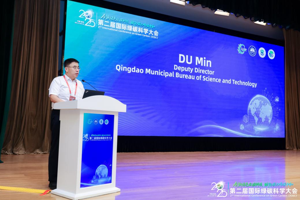 杜民代表市科技局发表致辞中指出,青岛市深入贯彻落实国家、省战略部署,认真践行绿色低碳发展理念、推动绿色低碳发展转型,勇当山东建设绿色低碳高质量发展先行区的“强龙头”。在制度创新上加强保障,推出加快绿色低碳高质量发展一揽子政策清单,先后获批全国首个“绿色城市”试点和全国首批碳达峰试点城市。在科技创新上加强支撑,强化环保领域国家级、省部级重点实验室培育,建造了全国首套海上二氧化碳封存设备,合成生物、钙钛矿电池、固态电池等领域形成一批重要科研成果。在产业创新上加强引领,国家级绿色工厂、绿色环保产业企业数量居全省前列,节能环保国家战略性新兴产业集群获评全国优秀等级。他表示,诚挚邀请各位积极推动更多先进技术、科技成果、优质项目落地青岛,青岛将着力搭平台、给政策、优服务,共同推动绿碳科学发展。